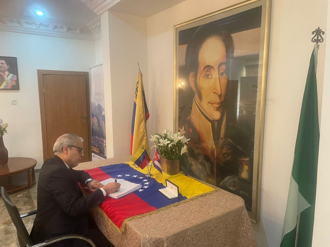 امروز سفیر جمهوری اسلامی ایران ضمن حضور در سفارت ونزوئلا در ابوجا دفتر یادبودی را که به مناسبت حادثهٔ تلخ اخیر و کشته شدن سربازان ونزوئلا در حمله هوایی آمریکا تهیه شده بود، امضا کردند. از طریق این اقدام، دولت و مردم ایران عمیقترین تسلیت خود را به دولت و مردم ونزوئلا و همچنین به کارکنان سفارت این کشور ابراز میدارند.